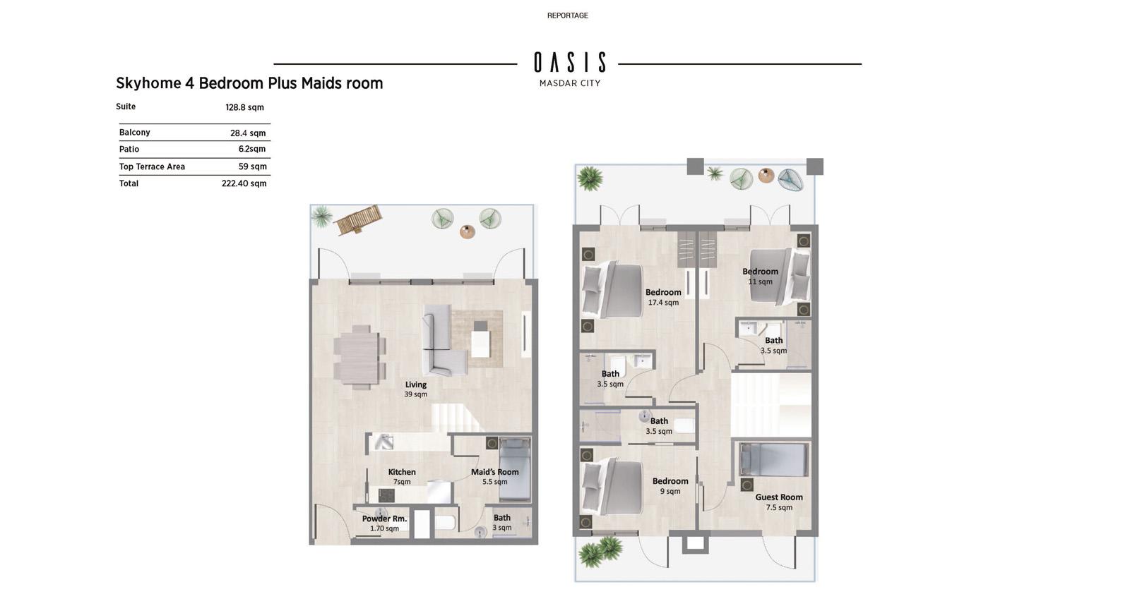 Oasis Residences by Reportage Properties, situated in Masdar City, Abu Dhabi, features 612 luxurious apartments across Oasis-01 and Oasis-02, including studios, 1 to 5 bedroom apartments, townhouses, and sky homes. Each residence offers modern interiors, fully equipped kitchens, high-quality bathrooms, balconies, built-in wardrobes, and smart home provisions. Designed with eco-friendly architecture and sustainable features, the development provides resort-style amenities such as a swimming pool, gym, landscaped gardens, playgrounds, and BBQ areas. Strategically located near Abu Dhabi International Airport, Al Raha Beach, Yas Island, and Ferrari World, it delivers a premium, connected, and sustainable urban lifestyle.