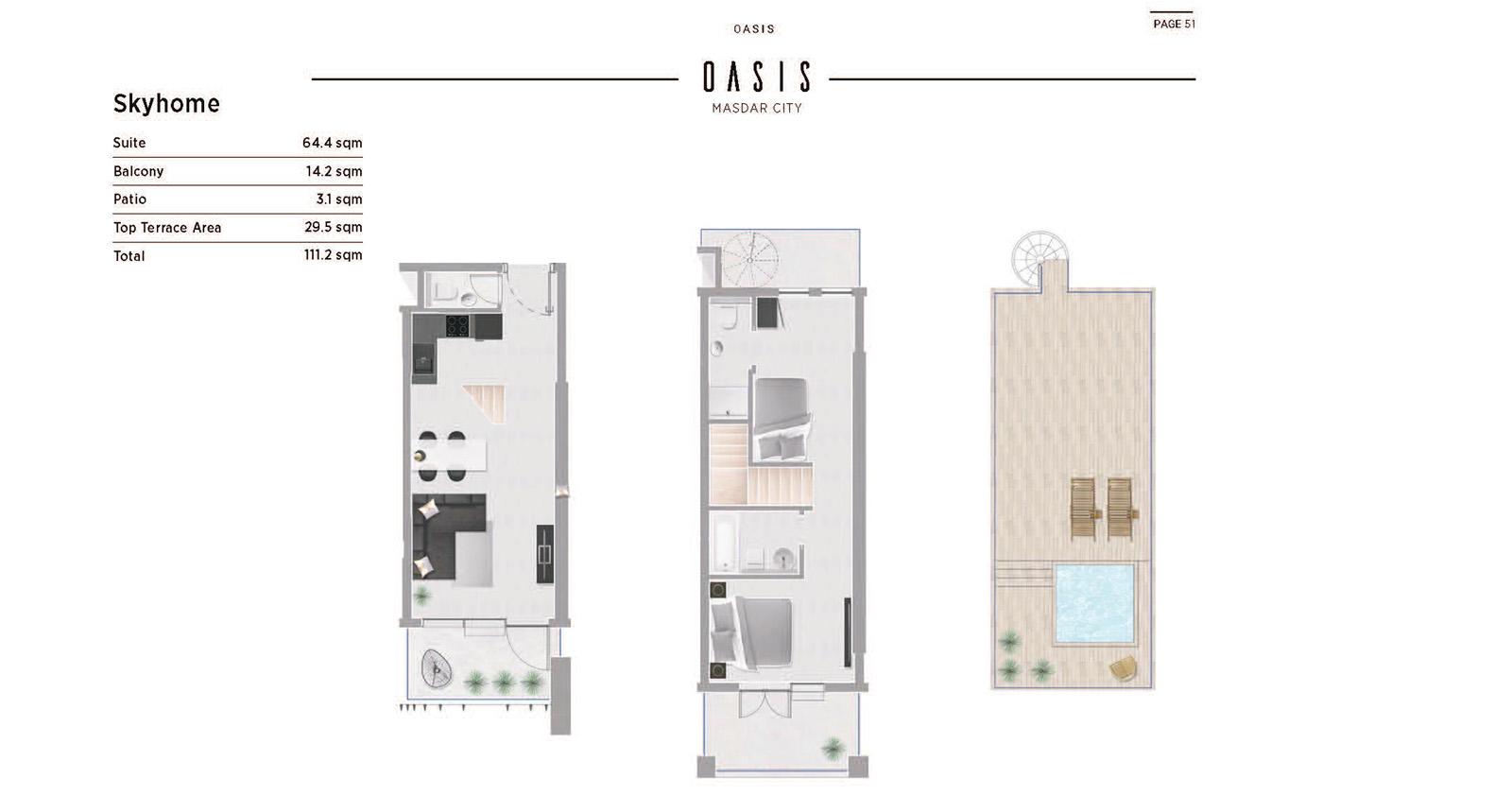 Explore the thoughtfully designed floor plans at Masdar O asis Residences in Masdar City, Abu Dhabi. Choose from executive studios, 1 to 4 bedroom apartments, townhouses, and Skyhomes, each featuring modern interiors, functional layouts, balconies or terraces, high-quality finishes, and smart home provisions.