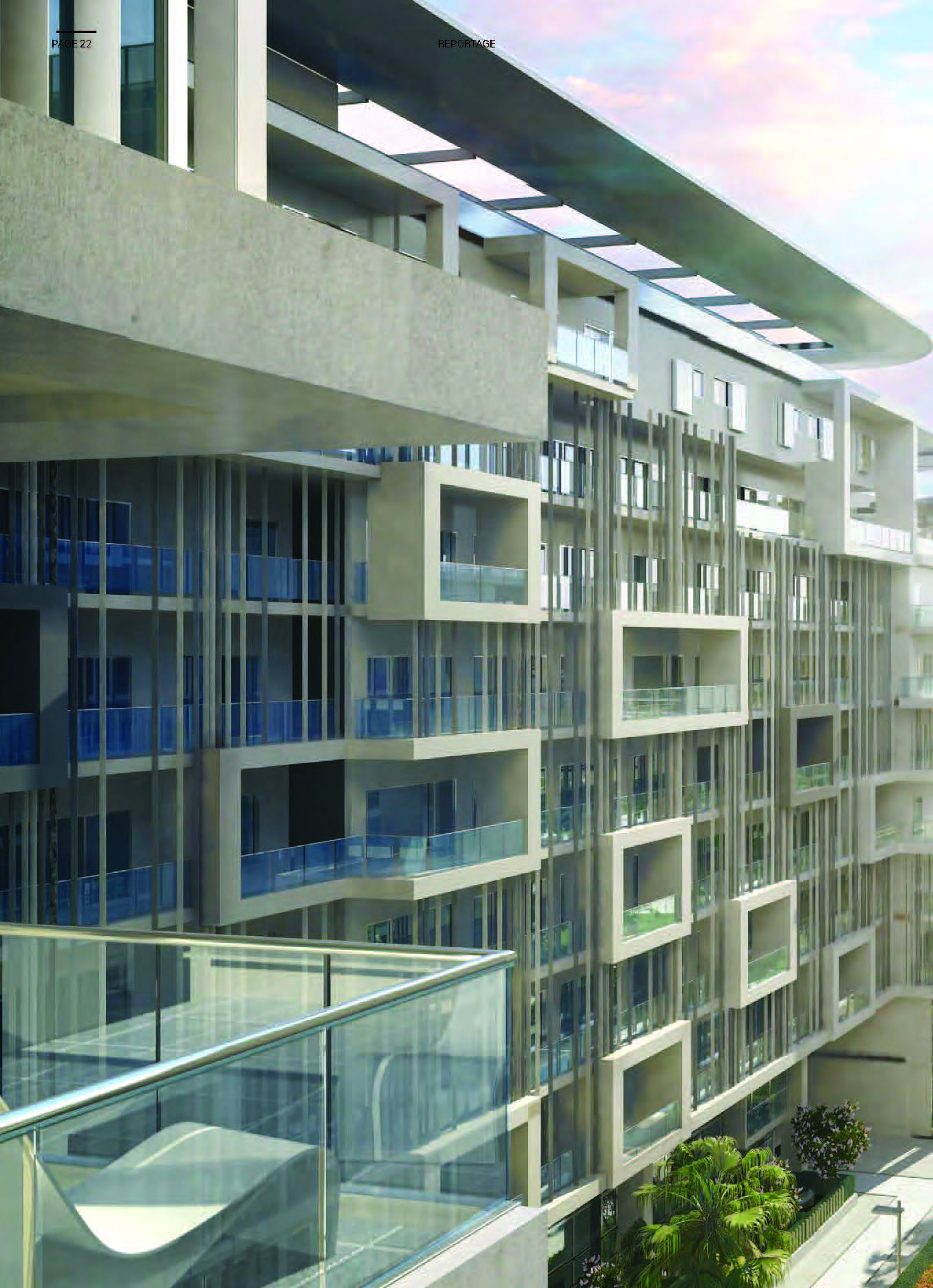 Architecturally, the building features modern design with Italian-Arabesque influences, neutral earth-tone façades, cantilevered roofs and double-glazed windows to optimise energy performance.